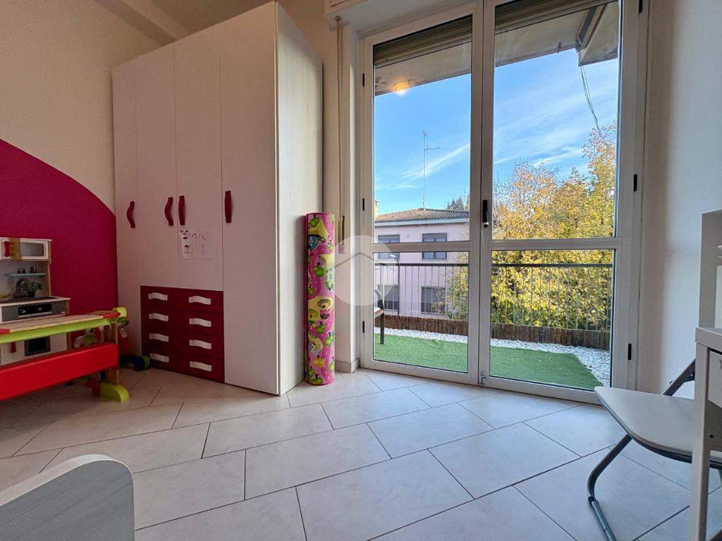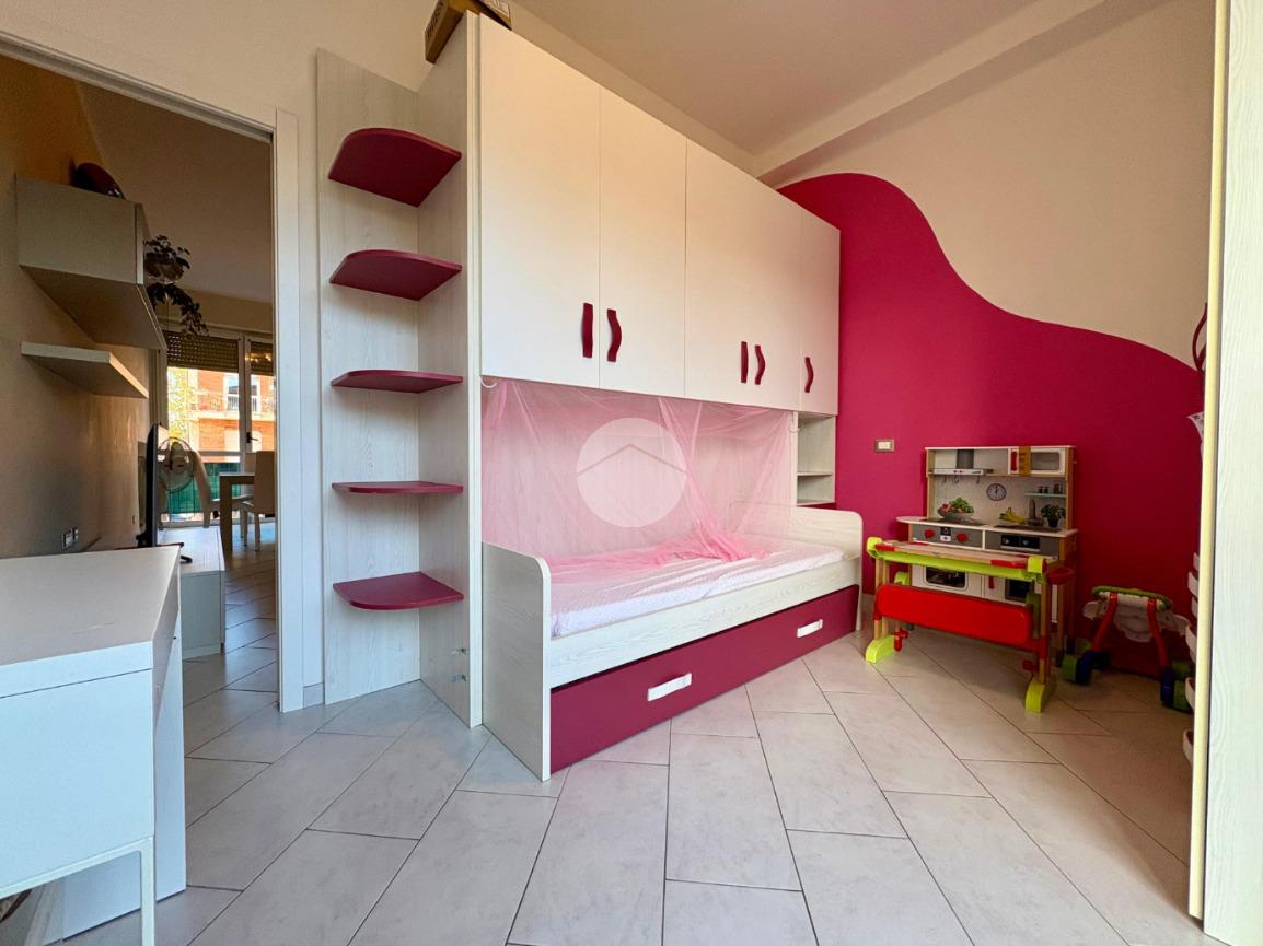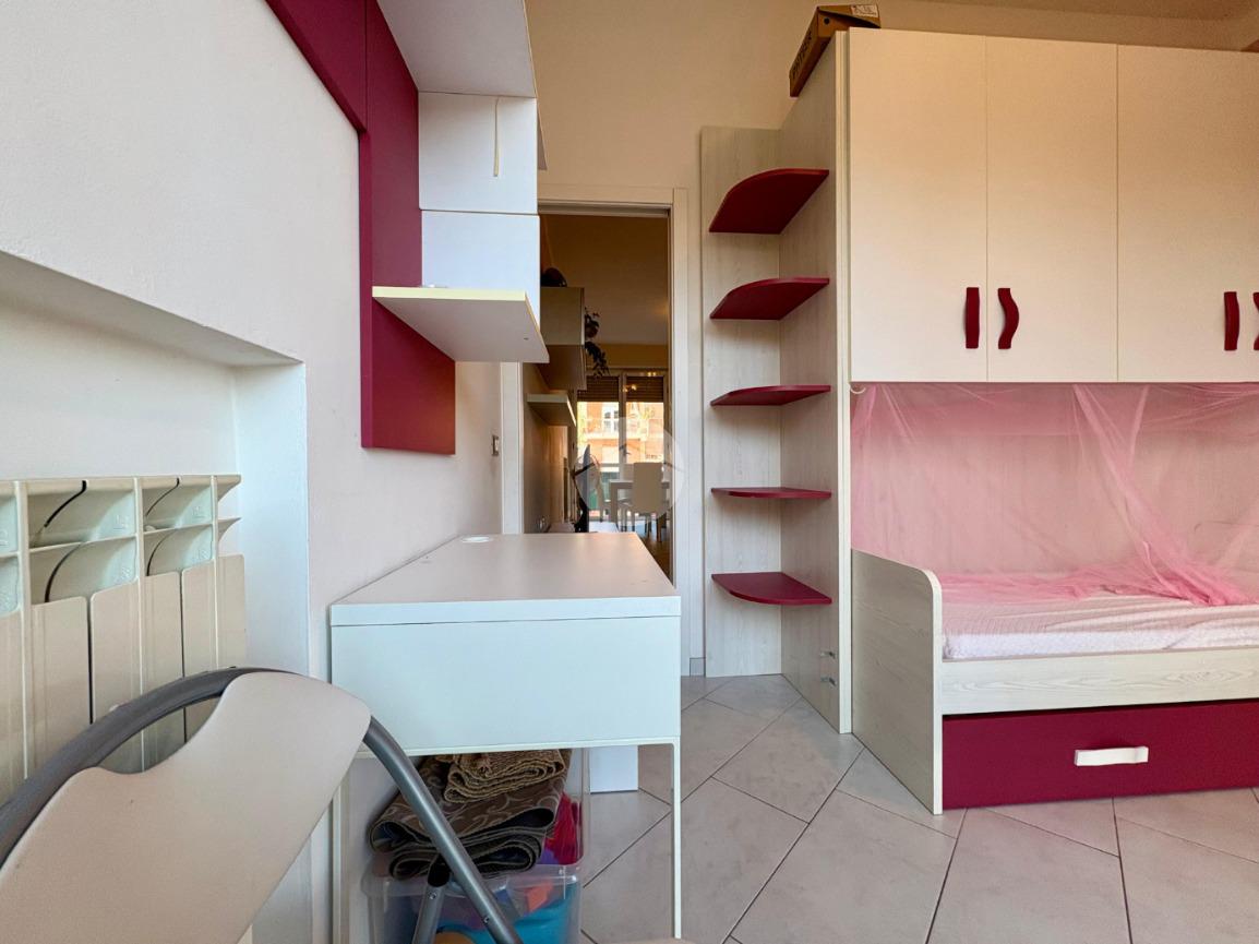 Dal soggiorno si raggiunge la prima camera, una stanza singola caratterizzata da una piacevole luminosità grazie alla presenza di un secondo balcone, che garantisce luce naturale per gran parte della giornata.