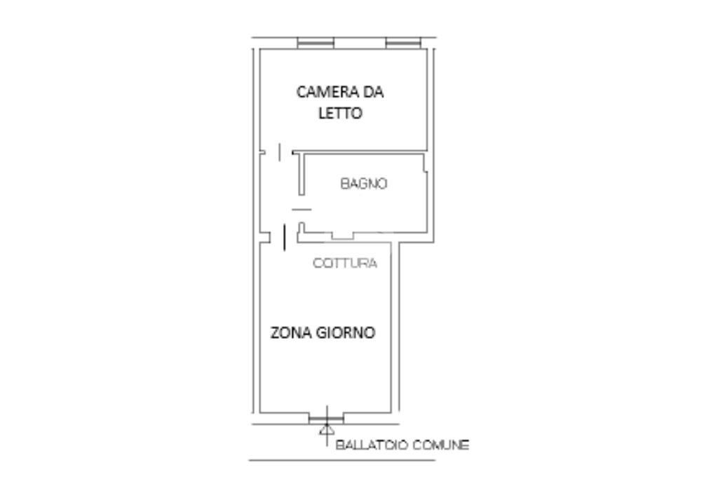 L’accesso all’abitazione avviene attraverso una scala interna condominiale che conduce al caratteristico ballatoio comune, dal quale si raggiunge l’ingresso dell’appartamento.