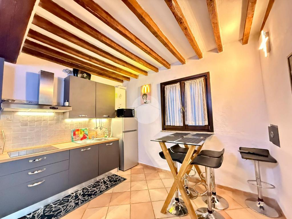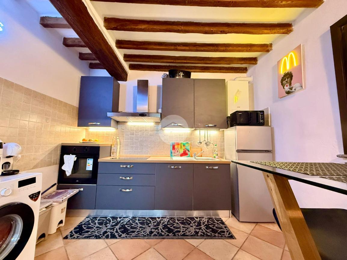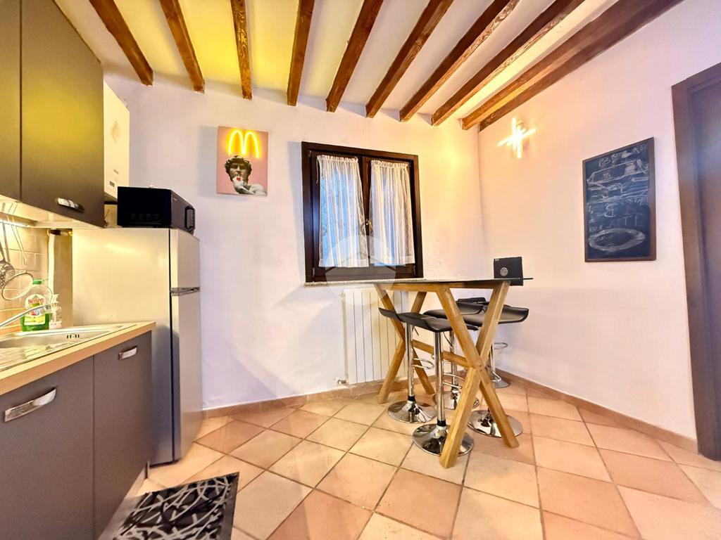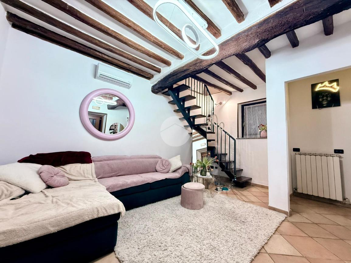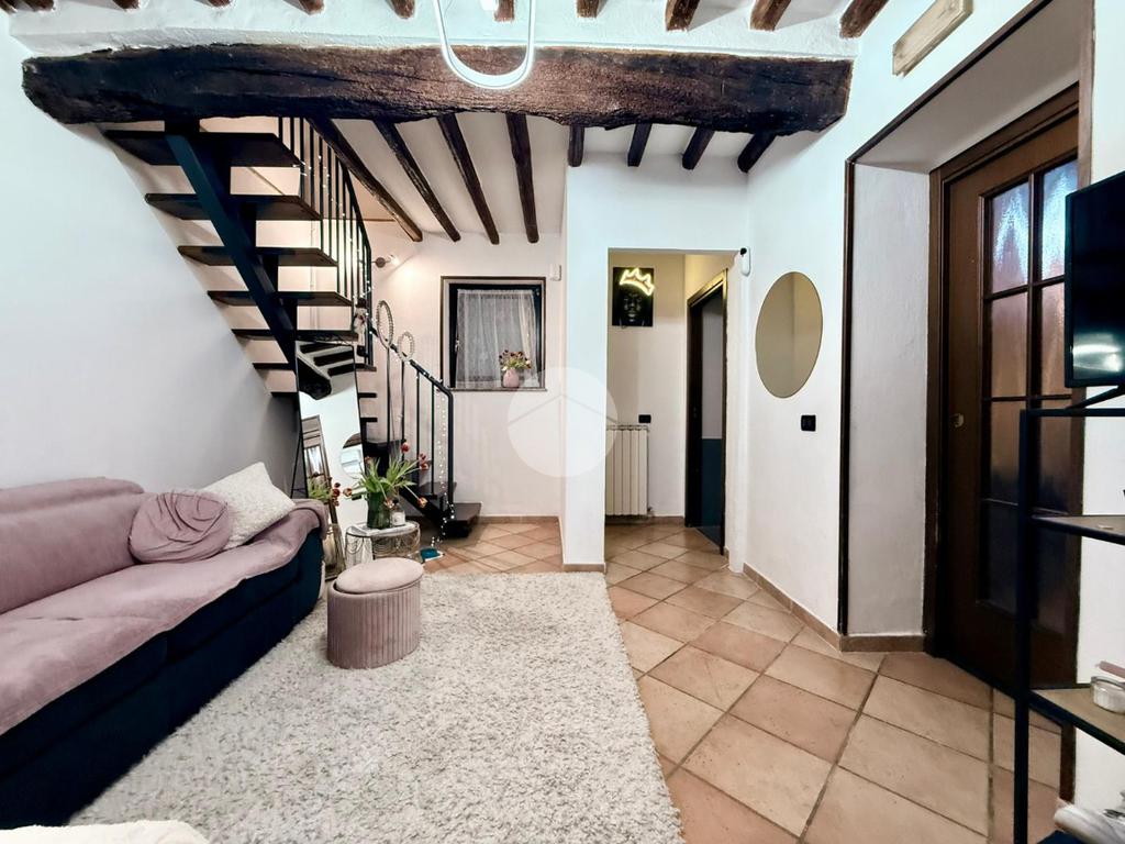 L’ingresso al piano terra conduce direttamente al soggiorno, ambiente accogliente e ben organizzato che rappresenta il cuore della casa. Da qui si accede alla cucina separata, funzionale e ben sfruttabile, mentre tramite un piccolo disimpegno si raggiunge il bagno finestrato, completo di box doccia.