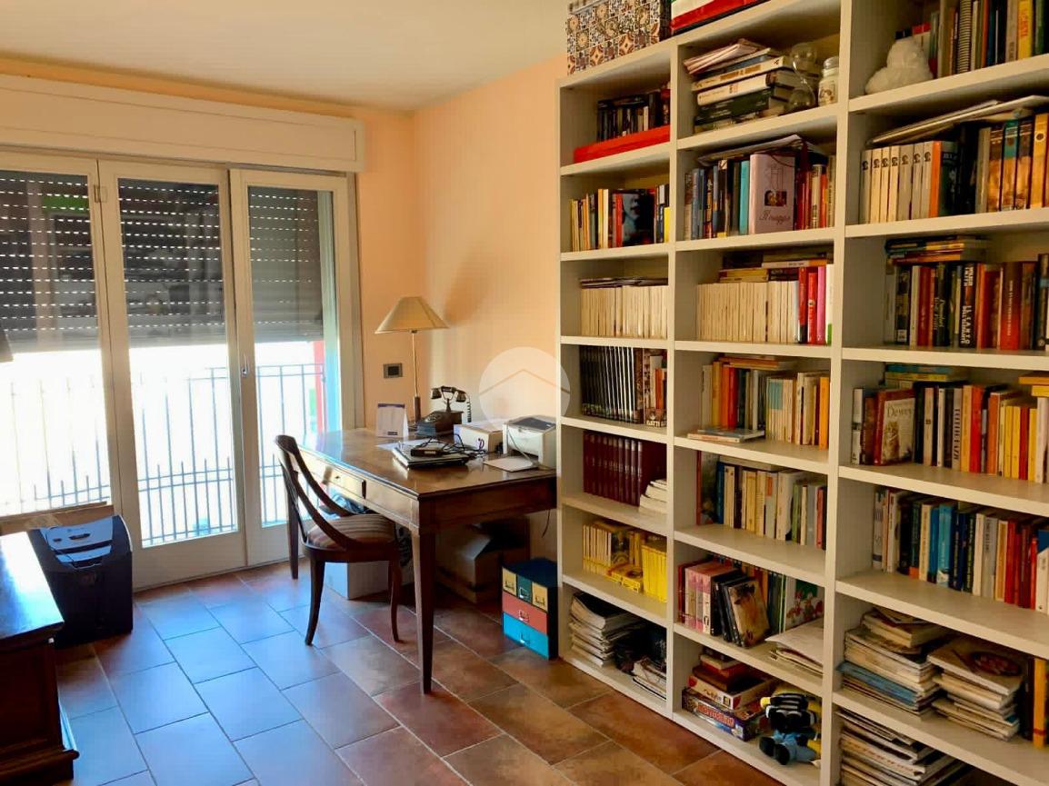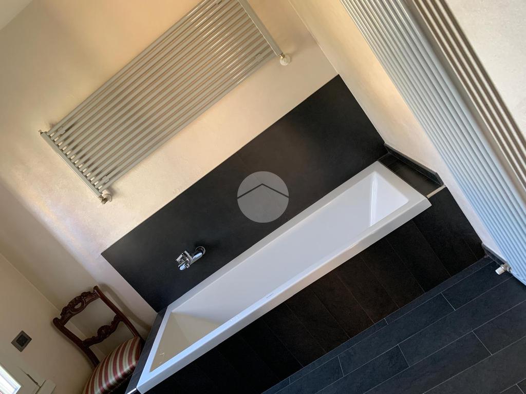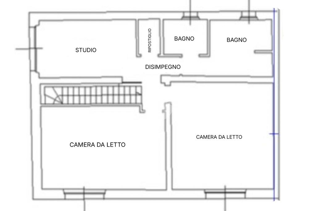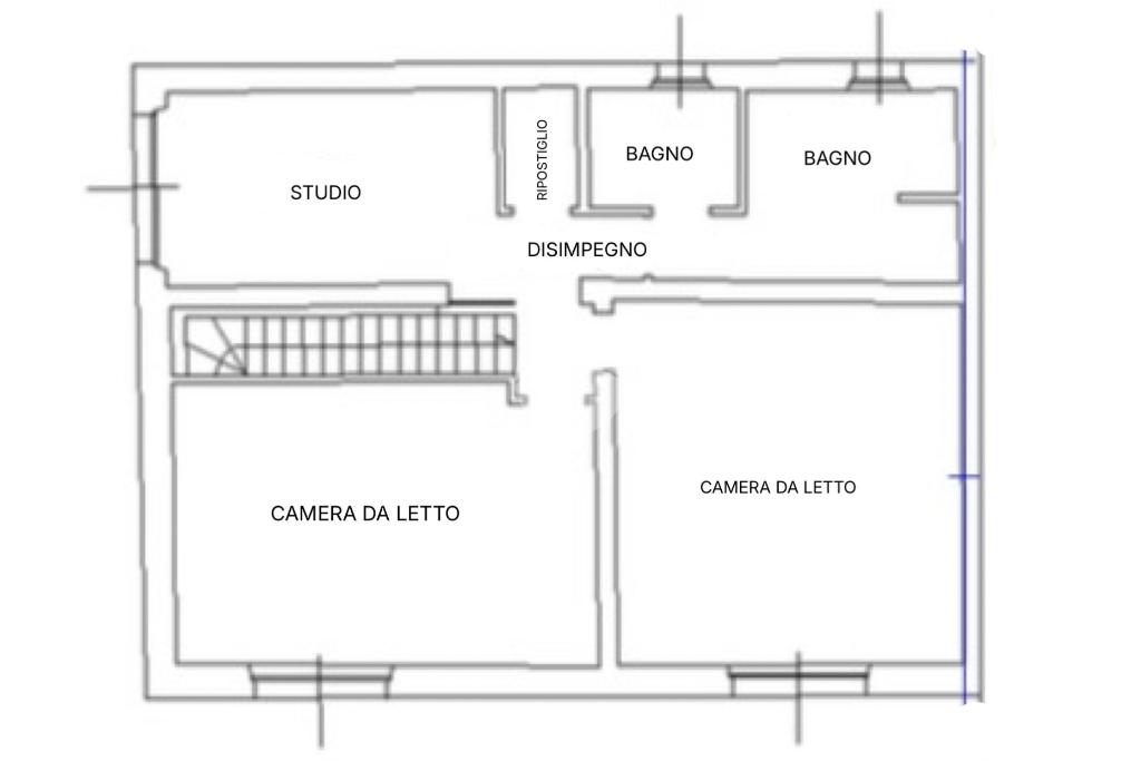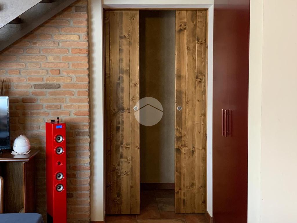 Tramite scala interna si accede al piano superiore, dove sono presenti due ampie camere matrimoniali ed una terza stanza attualmente adibita a studio. Sullo stesso piano vi è un bagno finestrato con box doccia e vasca.
